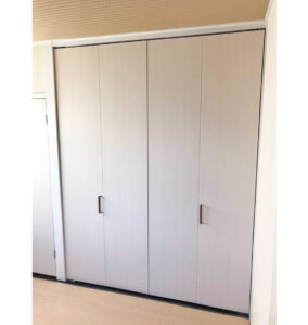 襖の鴨居を撤去し折戸にしました。折戸にする事で扉を開けた時の開口が広くなり、物を取り出しやすくなりました。